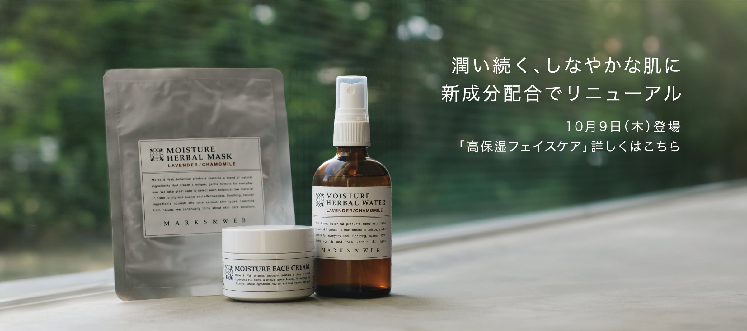 10月9日(木)より、「モイスチャーハーバルウォーター」「モイスチャーハーバルマスク」「ハーバルモイスチャーフェイスクリーム」は新たな成分を配合し、潤いの持続性を高めてリニューアルいた...