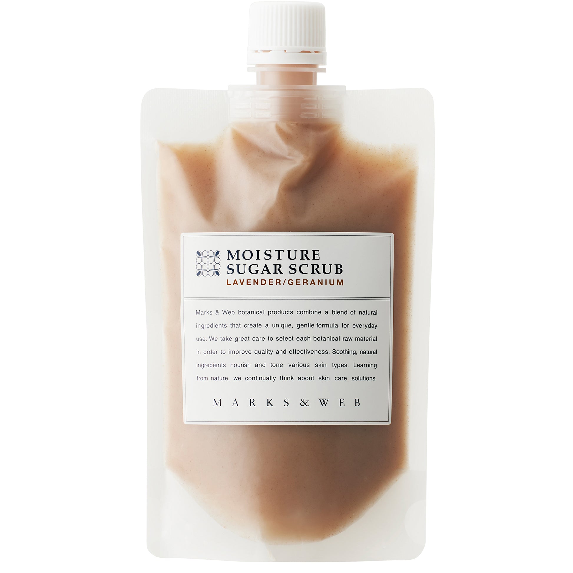 植物由来のオイルをベースに、スクラブ成分として2種類の砂糖(スクロース、黒砂糖)を配合。濡らした肌になじませながら軽くマッサージすると、ゆっくりと砂糖が溶けながらひじ・ひざの古い角質や肌表面の老廃物をやさしく落とし、潤いのあるやわらかな肌に整えます。細かい粒子でマイルドな使用感がお好みの方にもおすすめです。ラベンダー精油とゼラニウム精油の花の香り。