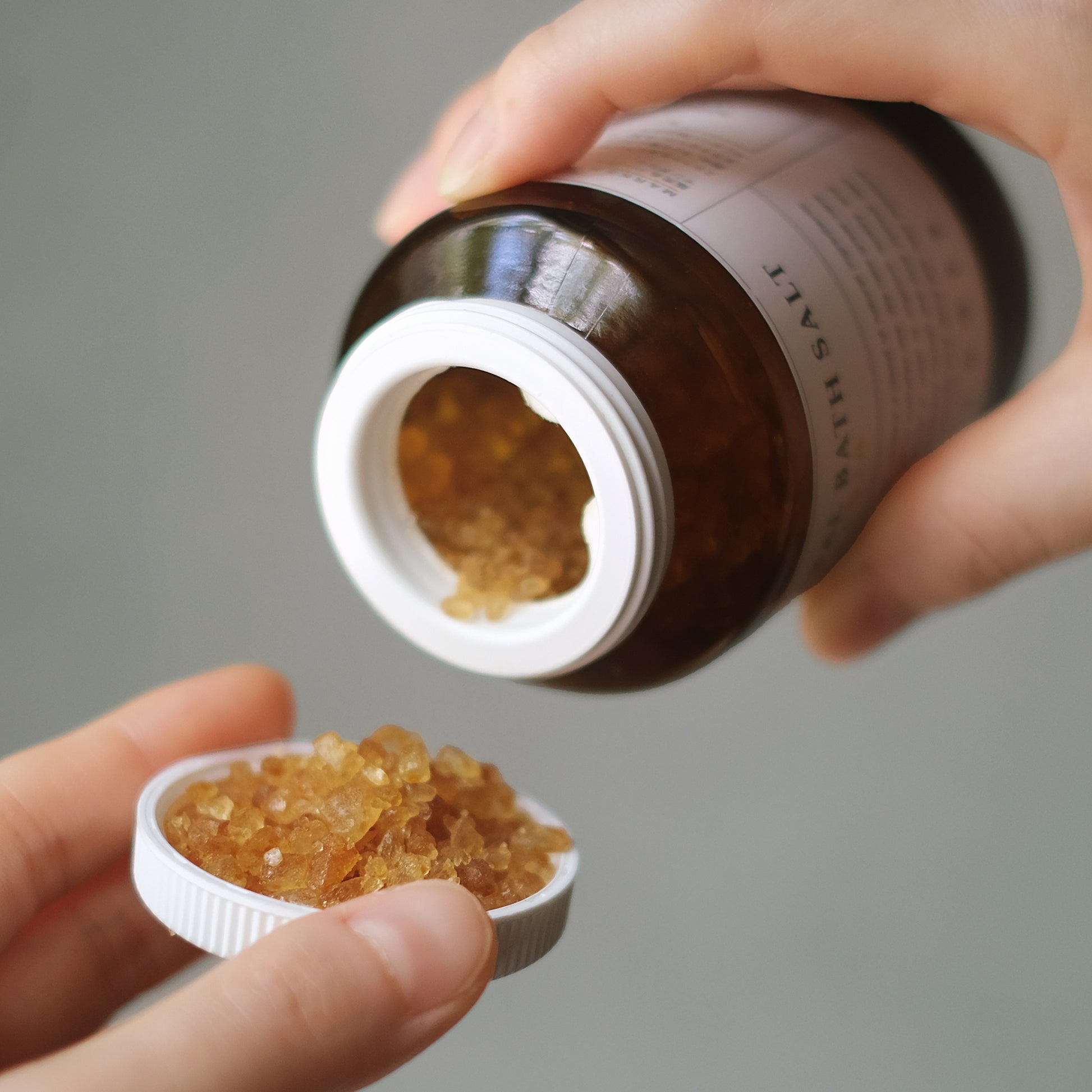 - 「ハーバルバスソルト」は半身浴にもおすすめ。浴槽にぬるめのお湯を、みぞおちの高さほどまで張り、バスソルトをよく混ぜてから半身浴します。身体があたたまるにつれて、汗が気持ちよく出てきます。