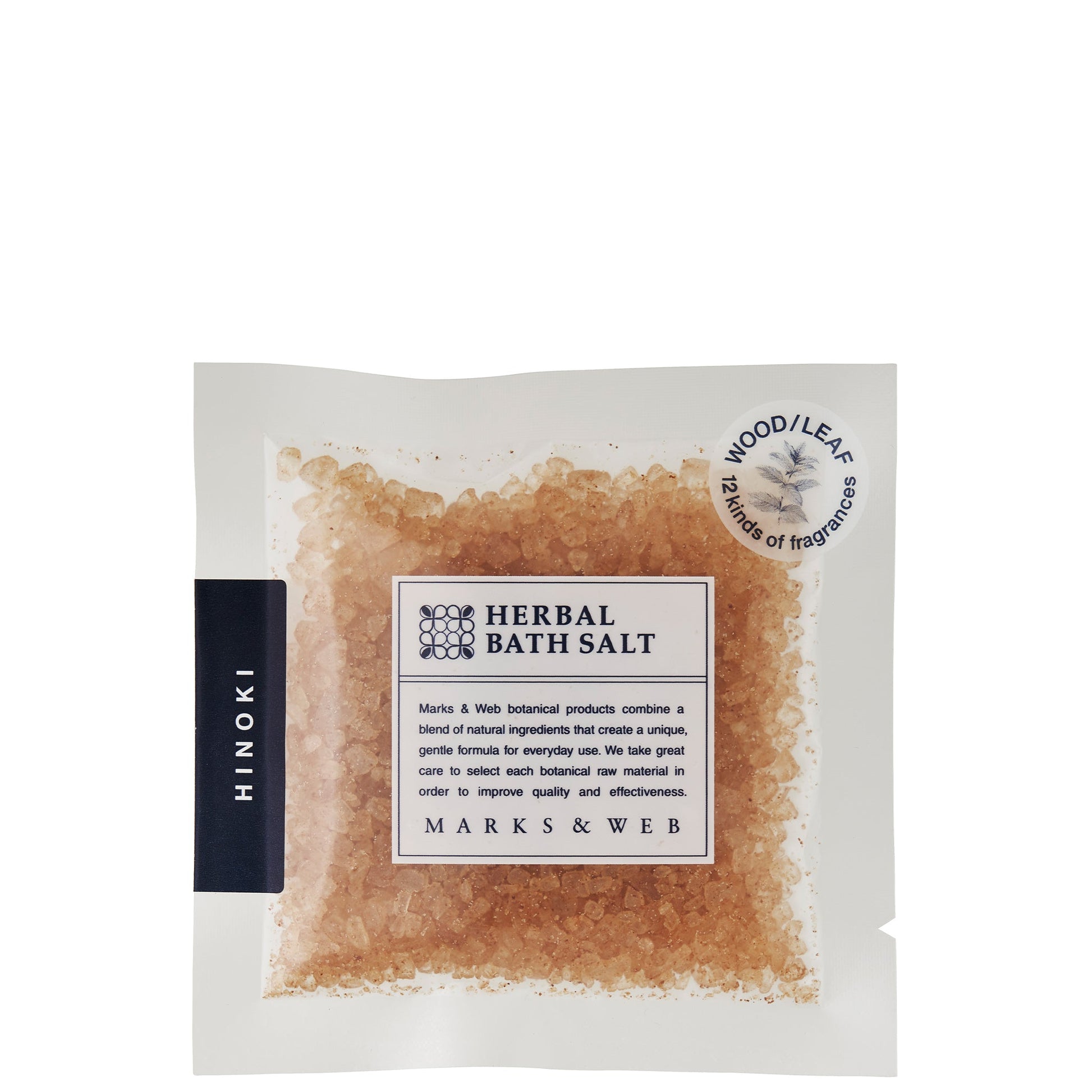 天日塩をベースに天然精油を配合しました。海水に含まれる塩を、太陽の日差しで時間をかけて乾燥・結晶化させた天日塩は、ミネラルを含んでいます。さっぱりとした使用感で肌を引き締め、キメを整える作用があるほか、じっくりとあたたまって汗をかきたい半身浴にもおすすめです。お湯に溶かし込むと、天然精油の香りが浴室にいっぱいに広がります。リラックスしたいバスタイムにどうぞ。ヒノキ精油特有の森林浴を思わせる樹木の香りです。