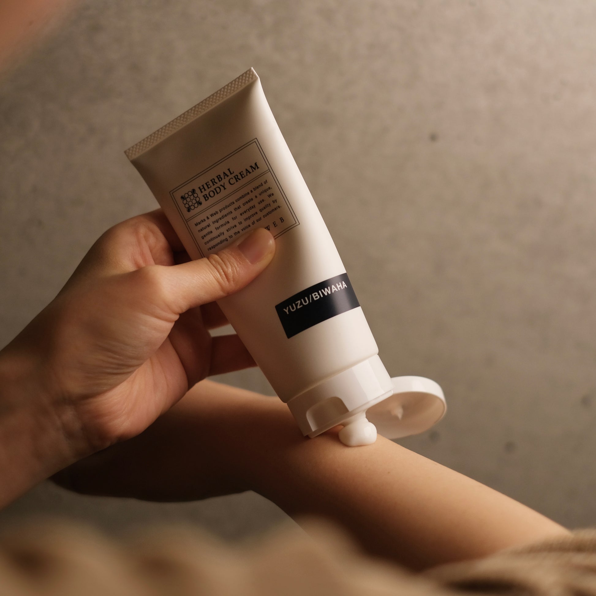 - 「ハーバルボディクリーム」には賦香成分として精油(エッセンシャルオイル)を配合しています。小さなお子様は身体が小さいため香料への感受性が大人より高くなりますので、弊社では小さなお子様にご使用になる場合は、精油を含まない無香料の商品をおすすめしています。