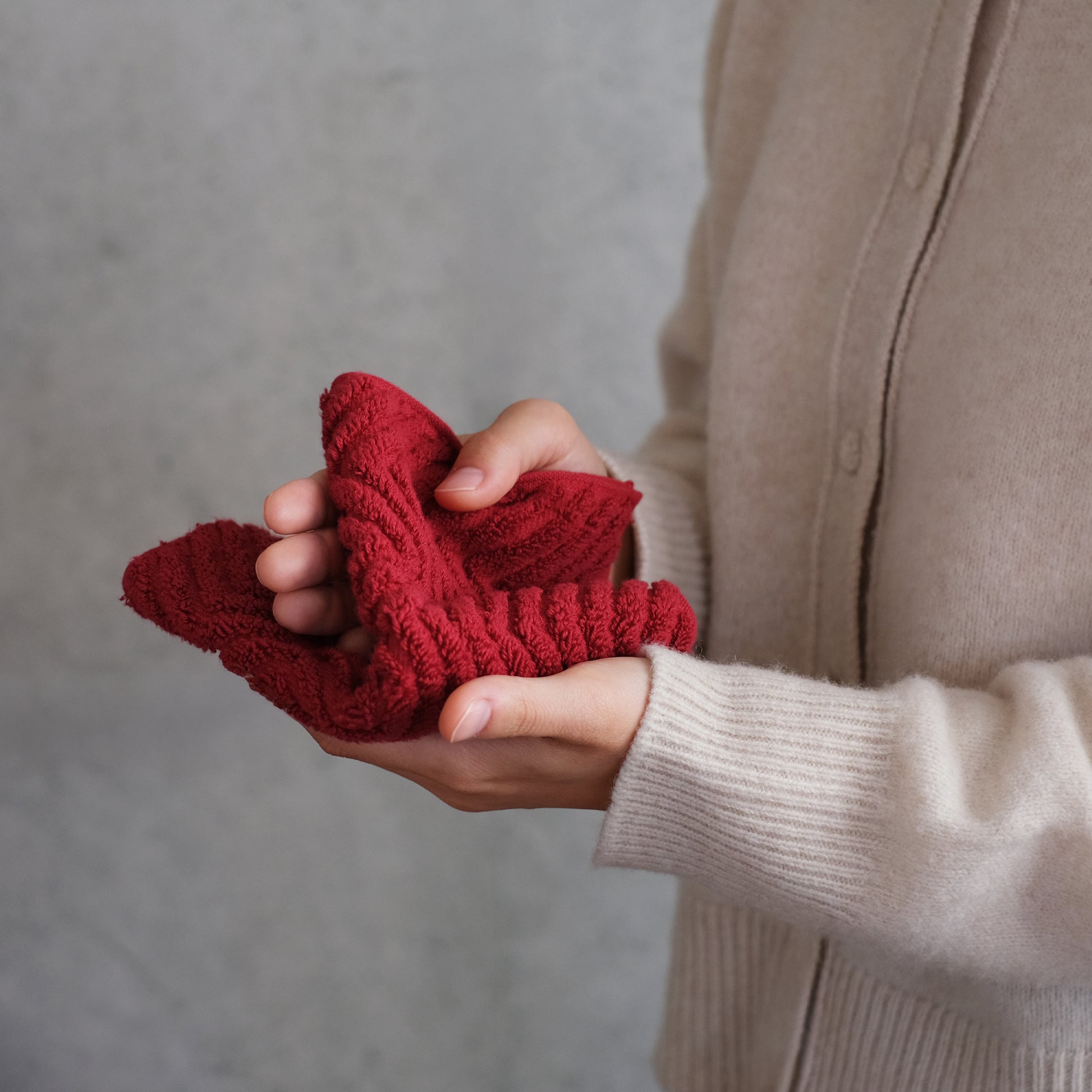 - たっぷりの水で、泳がせるように洗濯してください。粉石けんや天然油脂由来の液体洗剤をご使用いただくと、タオルの風合いをよりよい状態に保つことができます。洗濯後には、日光のあたる風通しのよい場所に広げて干し、乾き切る前に陰干しに移動させるのがおすすめです。タオルの温度を適度に下げることで、素材の含水量を自然な状態に戻すことができ、過乾燥による風合いの劣化を防ぐことができます。干すときには両端を持ってよく振り、空気を含むようにパイルを立たせてから干すと、ふっくらとした風合いが長持ちします。