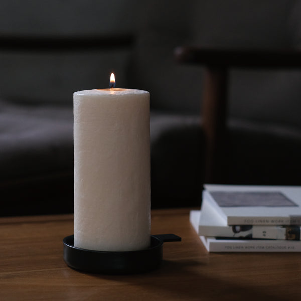 煤(スス)の出にくい植物性のパームワックスでつくったキャンドルです。炎のゆらめきとあたたかみのある色が、気持ちをリラックスさせてくれます。「ハンドメイド ハーバルキャンドル」は、さらに香りを楽しむという要素を加えました。賦香成分として配合しているのは、天然精油(エッセンシャルオイル)のみ。炎の熱によってキャンドル全体があたたまると、精油が気化して心地よい香りが漂います。パームワックス100%にこだわっているため使い方には少しコツがいりますが、キャンドルそのものの質感や、溶けて形が変化していく様子も楽しめます。インテリアになじみやすい、シンプルであたたかみのある色と形。コンパクトな大きさのSサイズは、キャンドルを試してみたいという方にもおすすめです。 ご使用頻度が高い方は、容量たっぷりのLサイズをどうぞ。