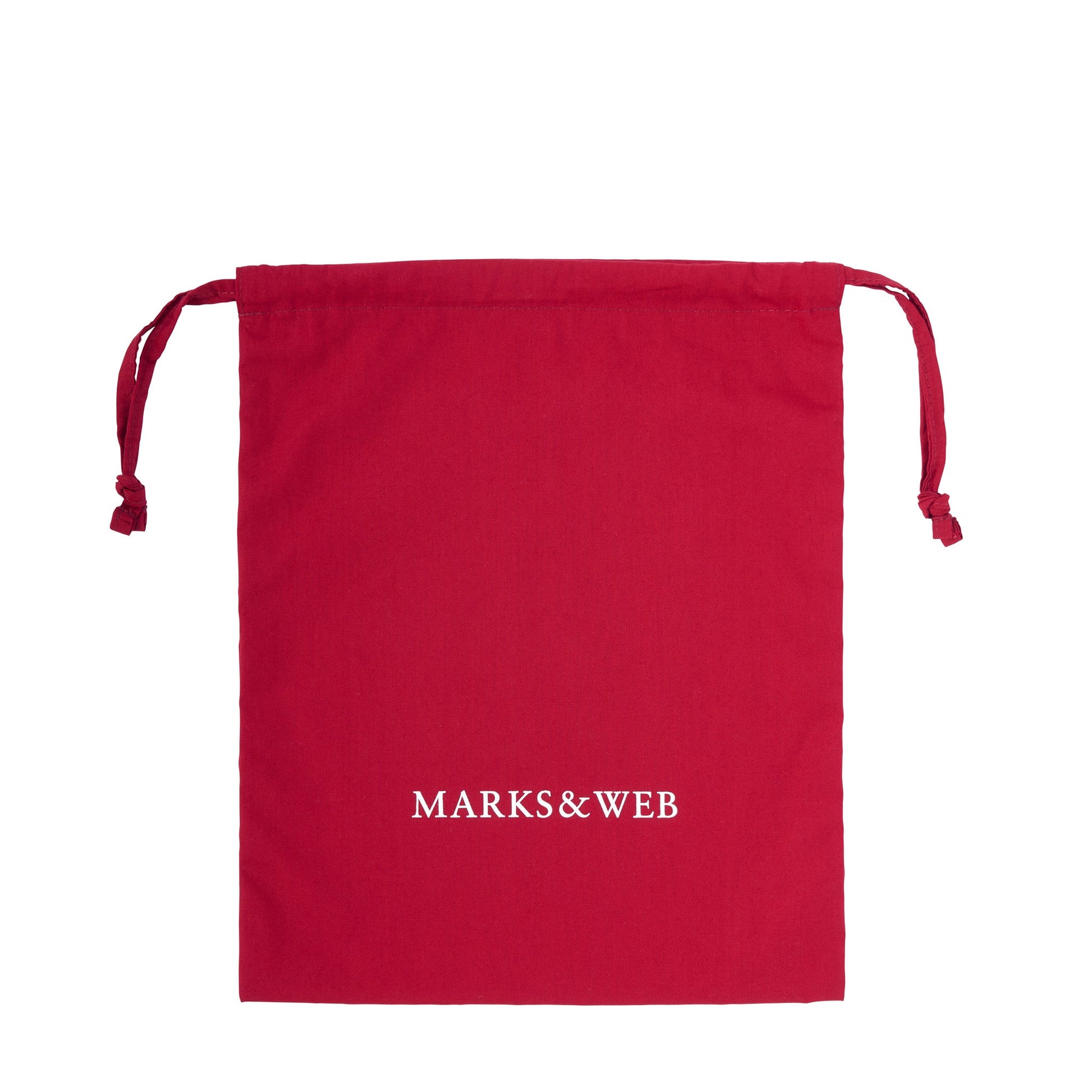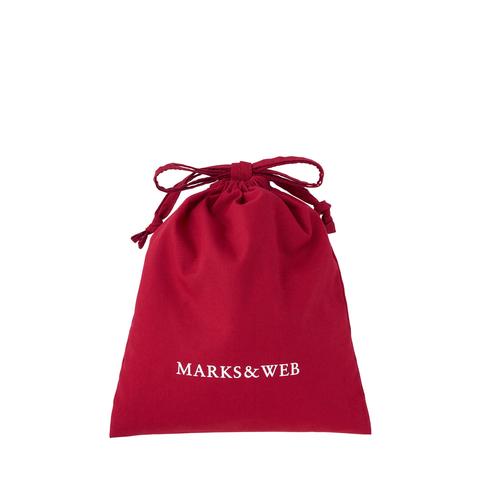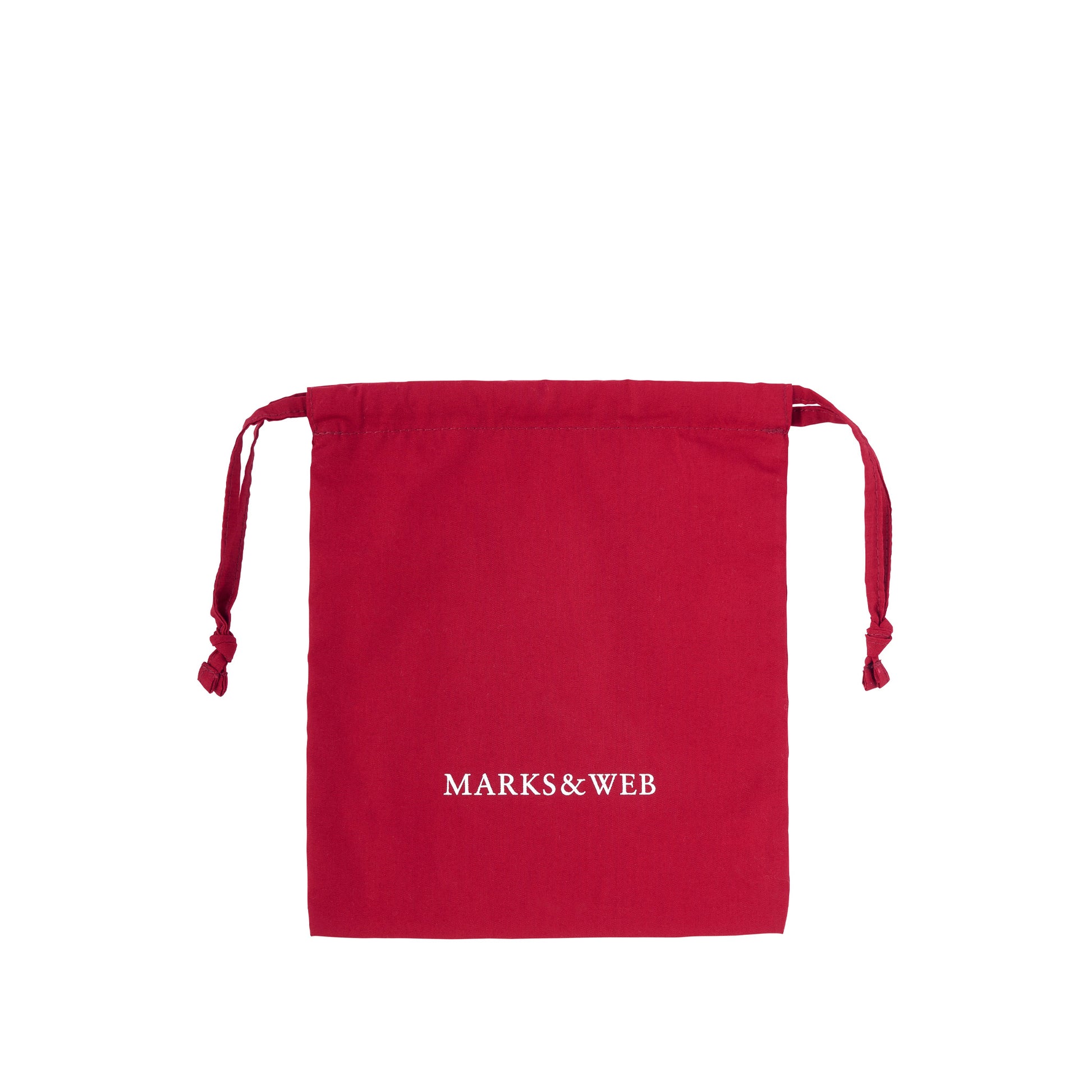 シンプルな薄手のコットン製巾着です。Sサイズはマークスアンドウェブのボディソープなどの250mLボトル2本、Lサイズは500mLボトル2本がぴったりと収まるサイズ。1枚バッグに用意しておくと、お買い物の際、商品のお持ち帰りに便利です。小物入れや荷物の整理など、普段使いしやすく、汚れたら気軽に洗って繰り返し使えます。上品な赤い色はクリスマスシーズンのギフトラッピング袋としてもおすすめです。