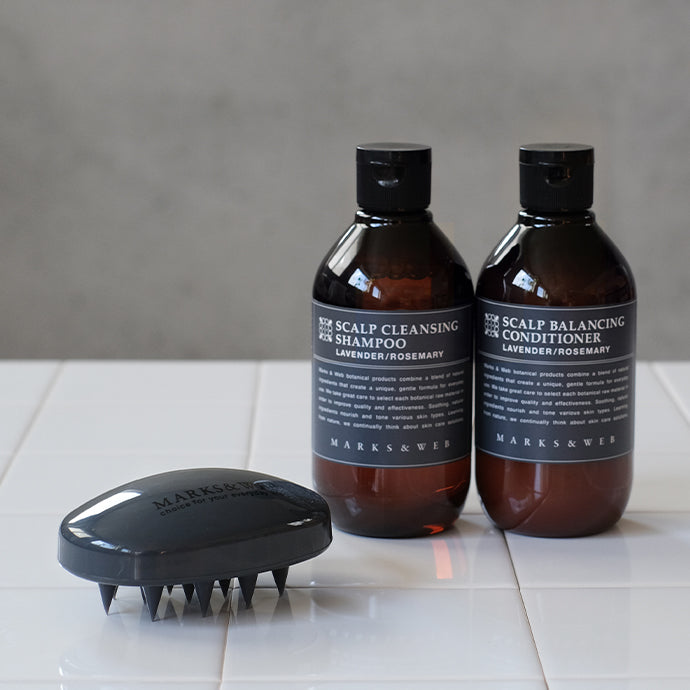 汗や皮脂など、指先では届きにくい地肌の汚れをしっかりと落とし、頭皮と髪をすこやかに保つシャンプー用ブラシ。心地よい使用感と、手のひらにすっぽりと収まる握りやすい形にこだわりました。シャンプーと一緒に使うことで地肌をすっきりと洗い上げるほか、適度なやわらかさと弾力性のある細い先端が、頭皮にほどよく刺激を与え血行を促します。内部に浸水しにくい構造のため、汚れにくく衛生的に使えます。 しっかりとした洗い心地がお好みの方は「スカルプマッサージブラシ グレー」をどうぞ。