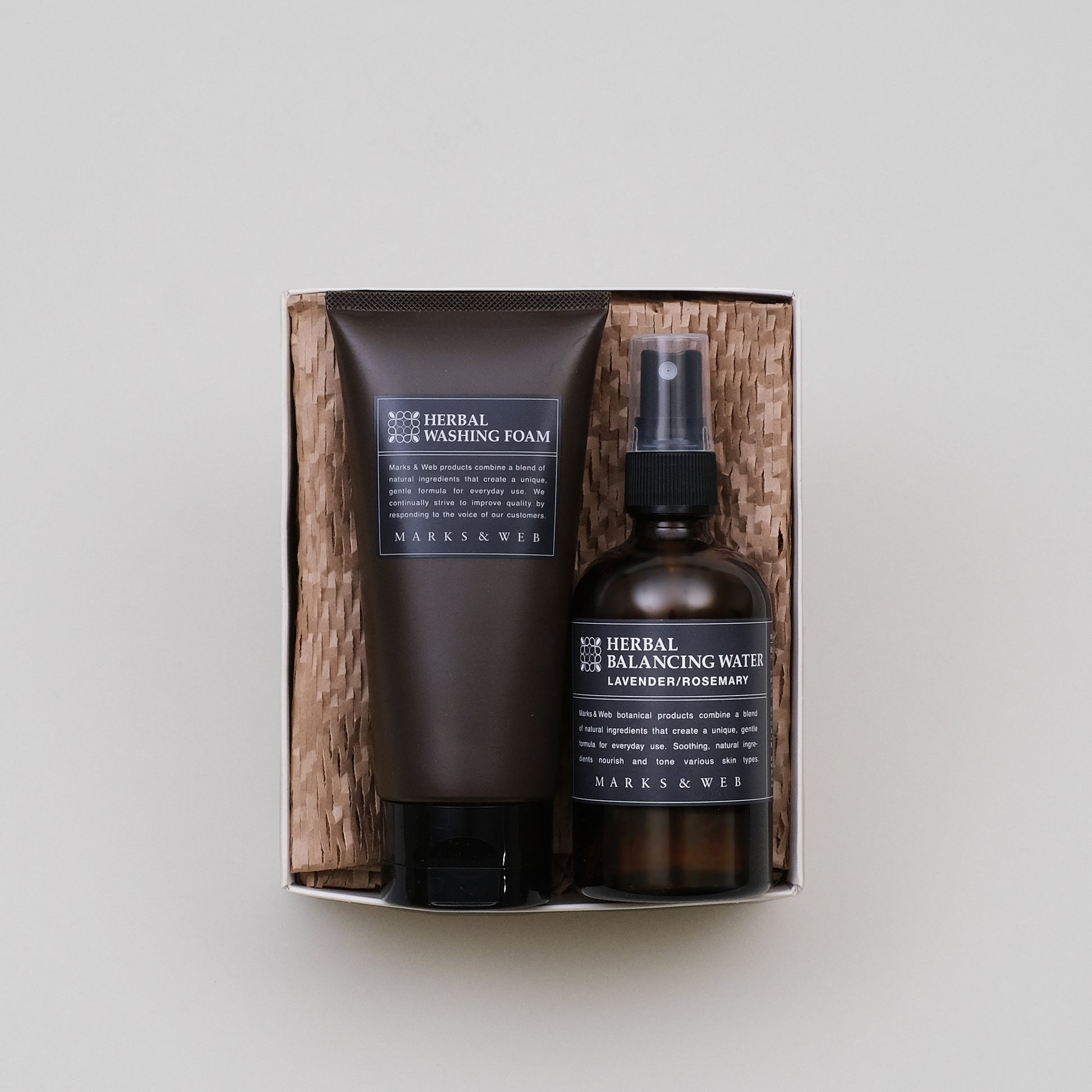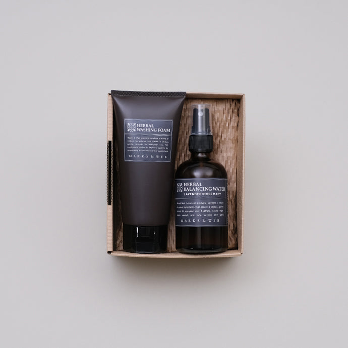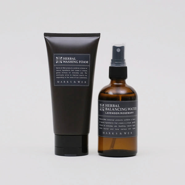 さっぱりと洗い上げる洗顔フォームに、肌をみずみずしく整える化粧水をあわせたフェイスケアセットです。どちらも、ラベンダーとローズマリーの甘すぎずすっきりとした香り。軽い使用感がお好みの方におすすめです。