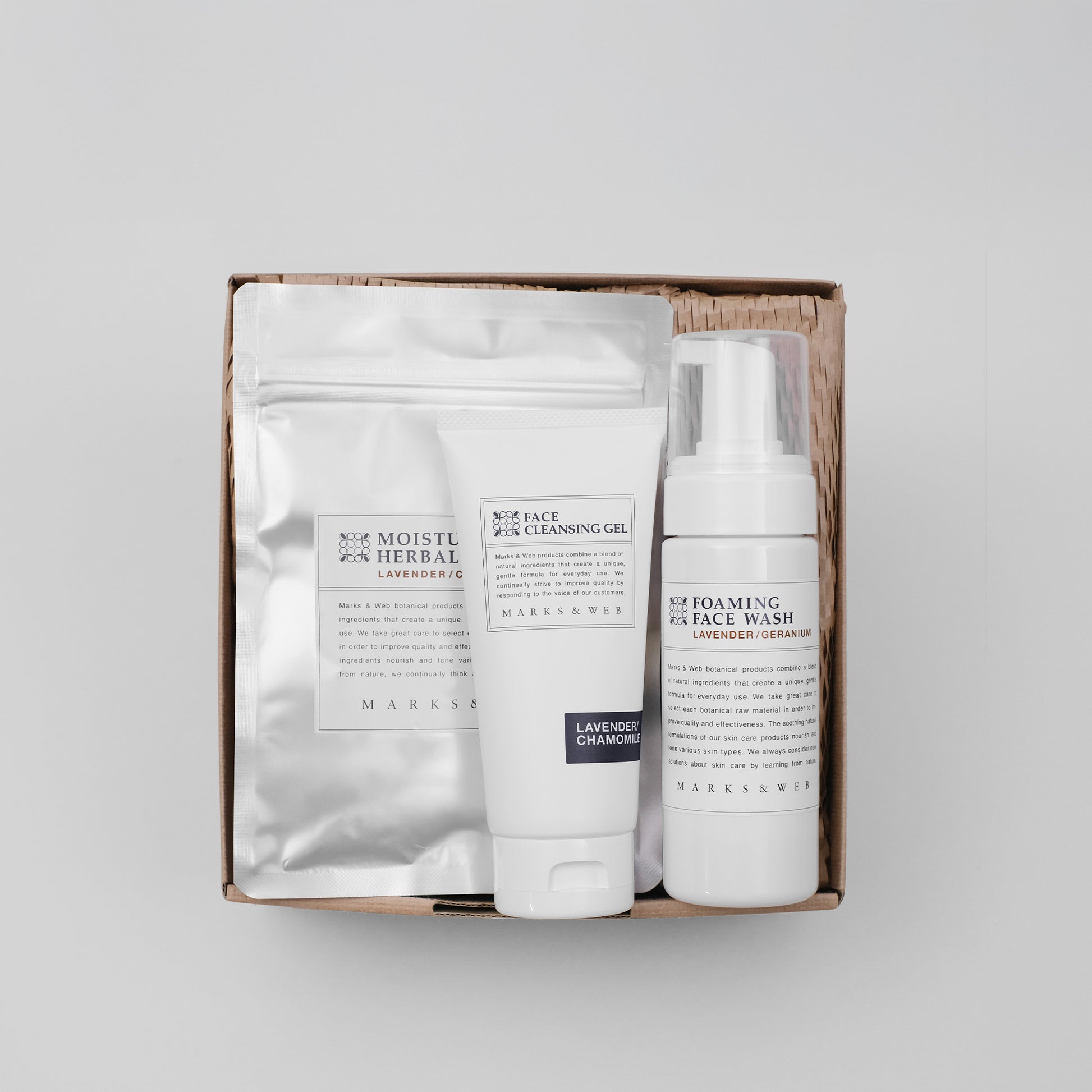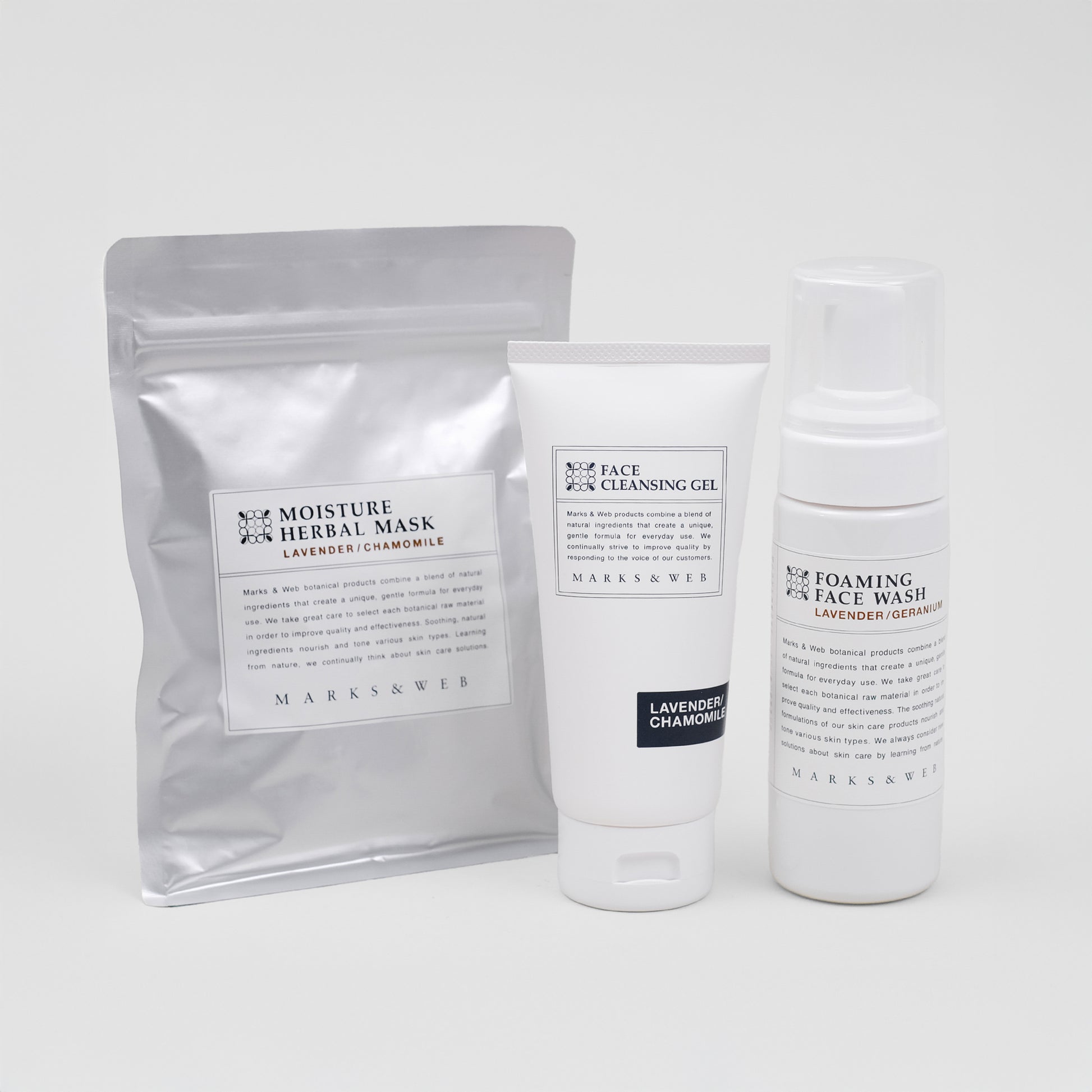 人気のフェイスケアアイテムをセットにしました。肌の潤いを守りながらメイクオフするクレンジングジェルと、しっとりと洗い上げる泡タイプの洗顔料に、スペシャルケアに使いたいシートマスクを添えました。やさしい天然精油の香りでほっと気持ちも穏やかに。毎日頑張っている大切な方へのプレゼントにいかがですか。