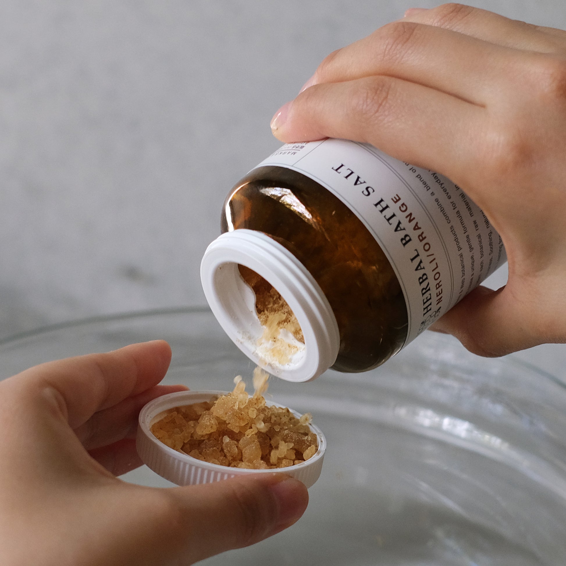 - 1回につき30g〜40g(キャップ2杯分)をお湯にいれてよく混ぜ、溶かしてからご入浴ください。柑橘系精油特有の刺激が感じられる場合がありますので、お肌が敏感な方は少なめの量からお使いください。ご使用後はすぐに排水し、浴槽や循環孔をよく洗い流してください。