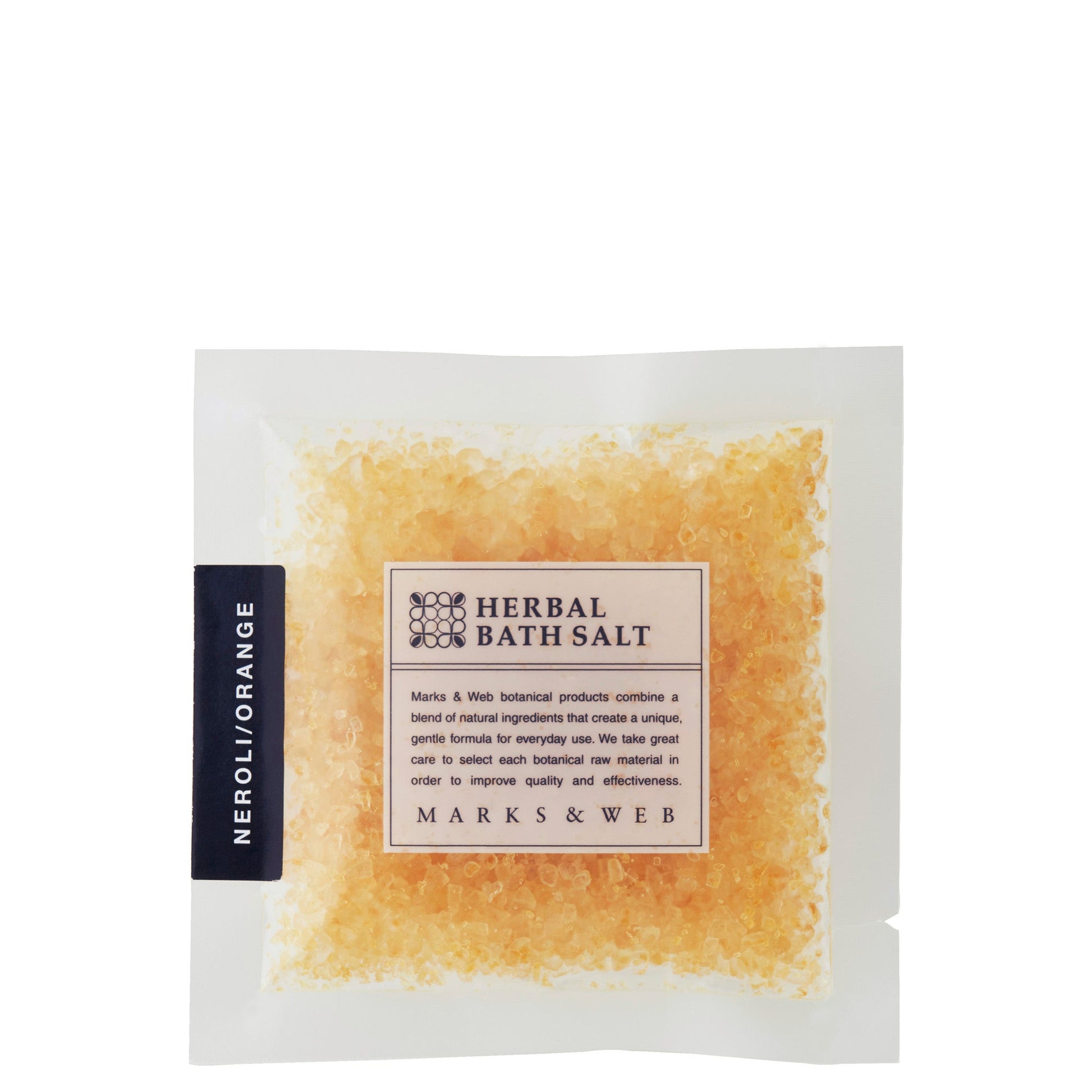 天日塩をベースに天然精油を配合しました。海水に含まれる塩を、太陽の日差しで時間をかけて乾燥・結晶化させた天日塩は、ミネラルを含んでいます。さっぱりとした使用感で肌を引き締め、キメを整える作用があるほか、じっくりとあたたまって汗をかきたい半身浴にもおすすめです。お湯に溶かし込むと、天然精油の香りが浴室にいっぱいに広がります。リラックスしたいバスタイムにどうぞ。ネロリ精油とオレンジ精油のやさしく甘い花と果実の香り。