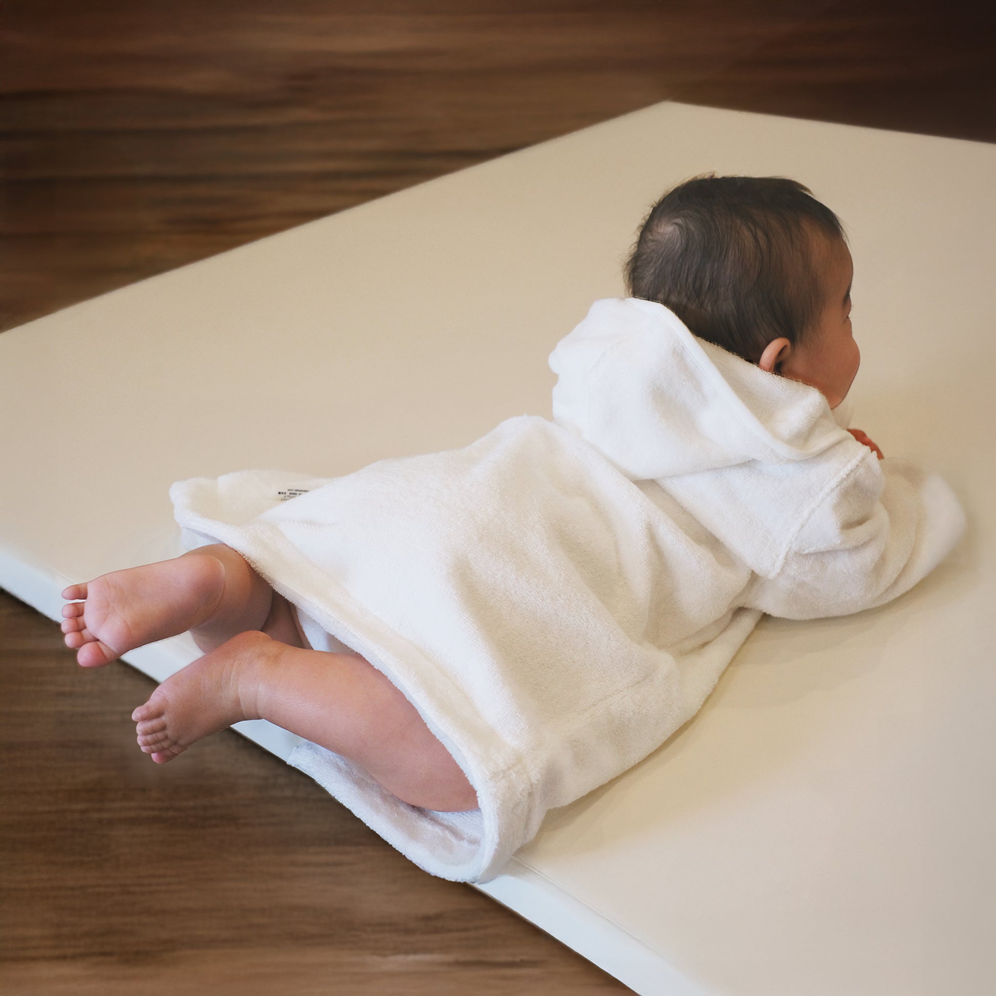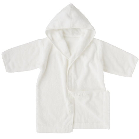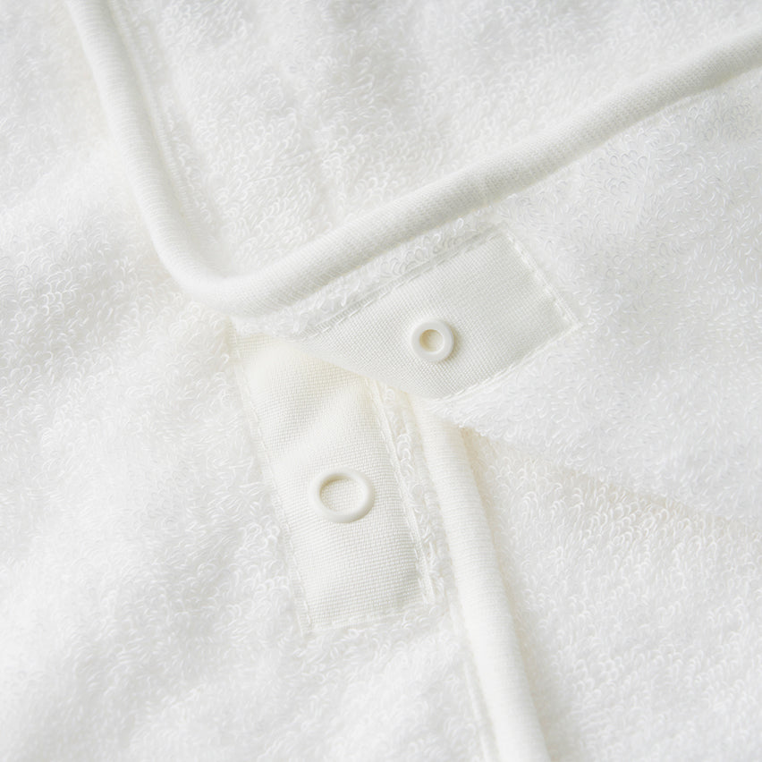 吸水性と保温性にすぐれたパイル地が、赤ちゃんや小さなお子様を湯冷めから守ります。頭もすっぽりと包めるフード付き。湯上り直後から体温が落ち着くまで着用ください。たっぷりとしたパイルが、湯冷めの原因となる入浴後の汗や水分をしっかりと吸収します。歩き始めたお子様にもさっと着せられるので、忙しいお母さんにも便利。出産のお祝いとして人気の高いアイテムです。お風呂上りだけでなく、海やプールサイドでのご使用もおすすめ。スナップボタンで留める仕様です。