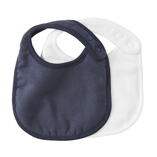 「オーガニックコットン素材のよだれかけがほしい」「吸水性の高いタオル生地でつくってほしい」というご要望から生まれた、片面がパイル地のビブです。赤ちゃんが寝ていたり、ベビーカーに乗ったままでも着脱しやすくするためボタンの位置はサイドにし、首回りの大きさを調整できるよう2つ付けました。赤ちゃんのよだれの量や肌触りのお好みで、パイルのない面とパイル地の面、どちらを表にしてもご使用いただけます。安心の品質と心地よい肌触りにこだわり、今治の工場で丁寧に仕上げました。ご自宅用としてはもちろん、出産のお祝いにも人気の高いアイテムです。