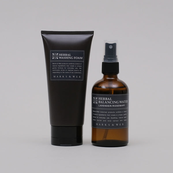 さっぱりと洗い上げる洗顔フォームに、肌をみずみずしく整える化粧水をあわせたフェイスケアセットです。どちらも、ラベンダーとローズマリーの甘すぎずすっきりとした香り。軽い使用感がお好みの方におすすめです。